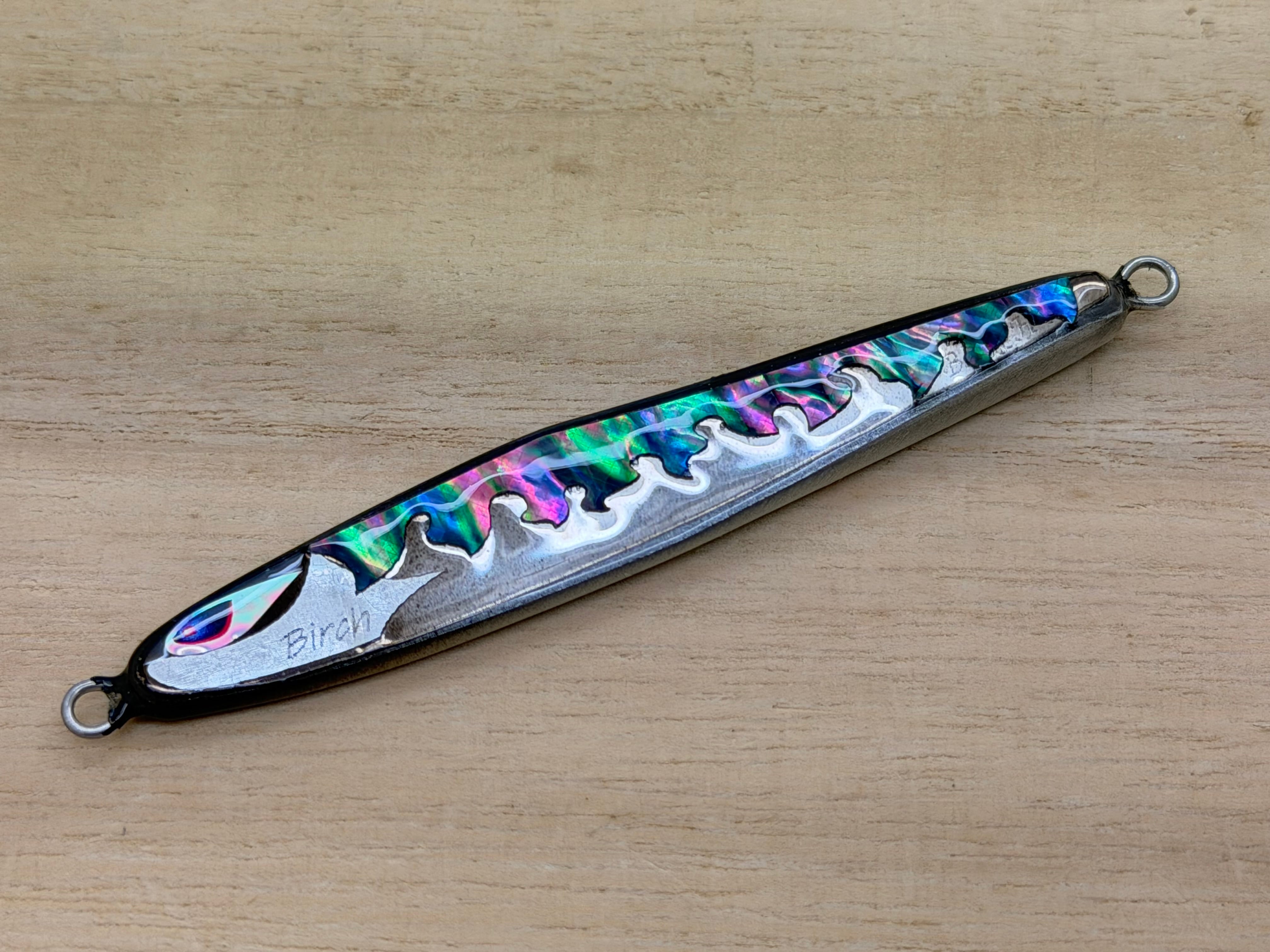 BIRCHⅡは海アメ、海サクラに対応した遠投設計。フラットで大きな側面でアピールし、テールを振りながらの安定したアクションをみせます。フォーリングはロールアクションでバイトを誘発します。安定した飛行姿勢と水中での姿勢のバランスを意識したやや後方重心で設計しました。